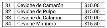 Selecciona 2 opciones: Camaron, Pescado o Calamar.